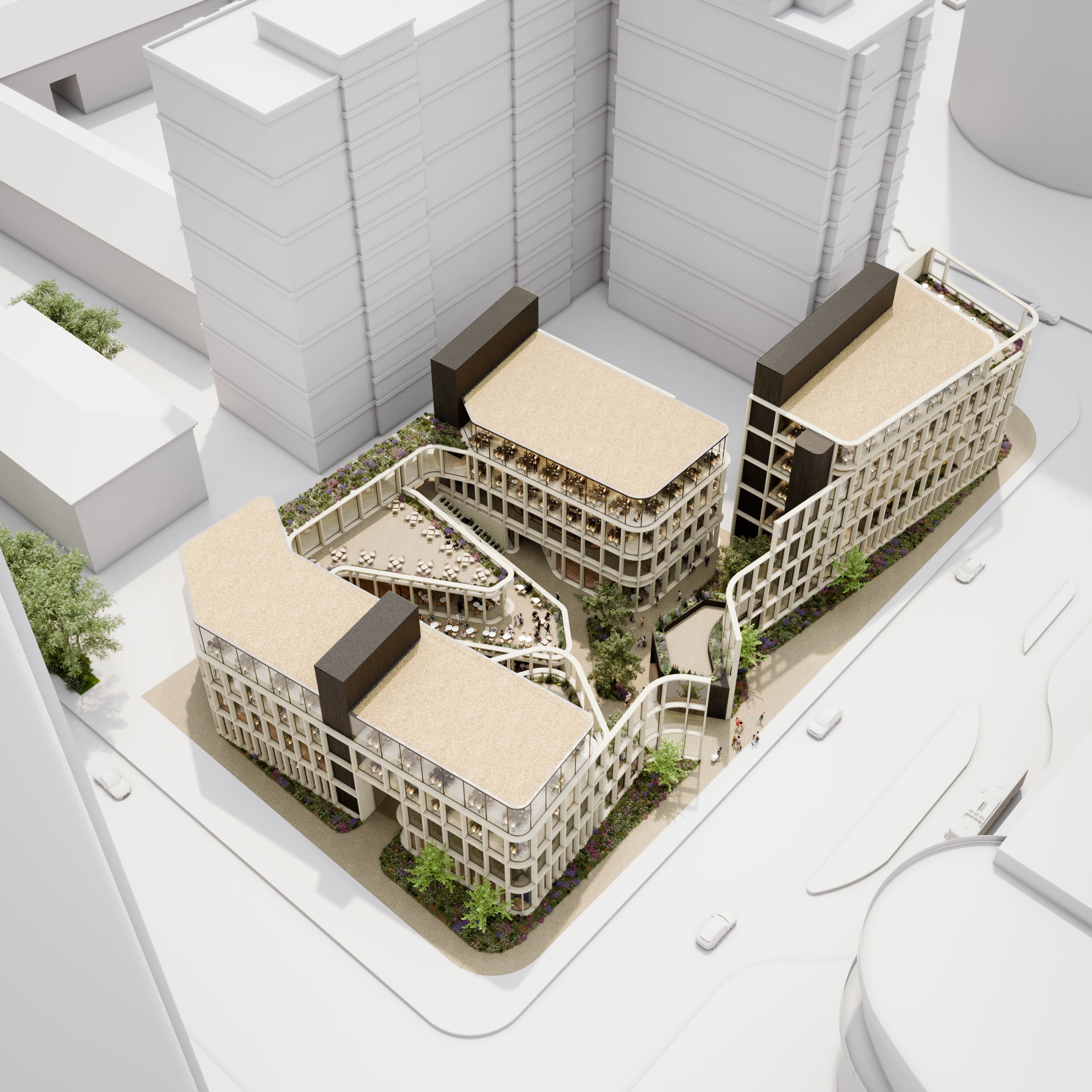 In order to thrive, new buildings need to engage with the publc realm and be designed to draw people in. The conceptual starting point for the design of this multi-level development of restaurants, bars and commercial office space is the city’s historic core, whose enclosing walls provide shelter from the elements and, with its bringing together of arcades, steps, ramps and walkways, creates a three-dimensional landscape that encourages people to explore.