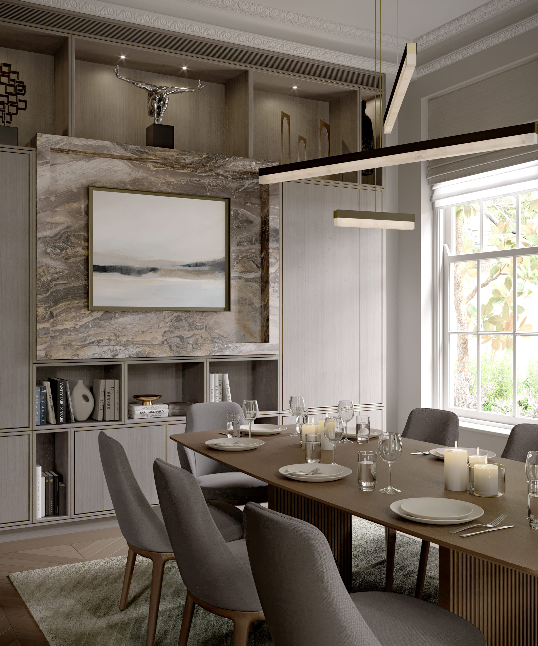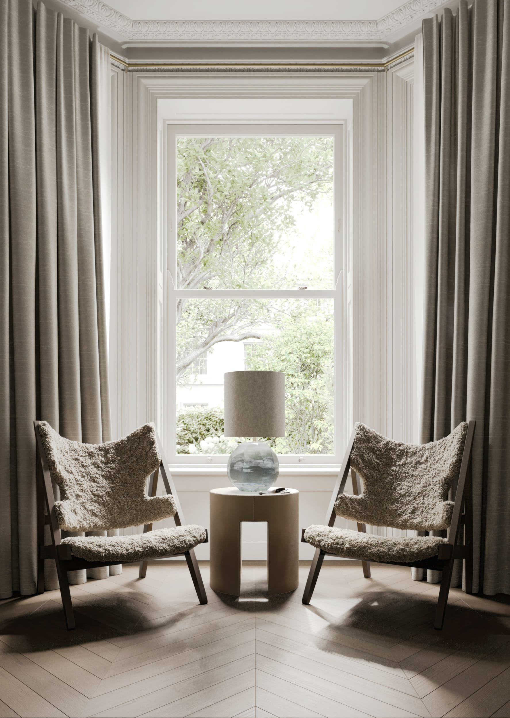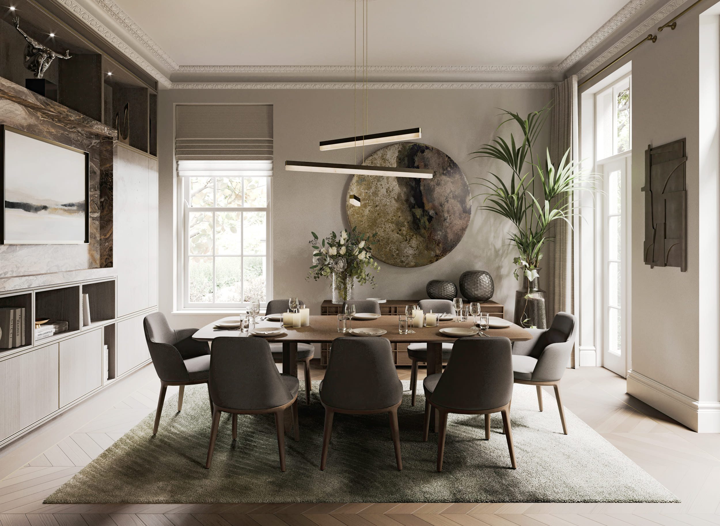 With the serenity that comes naturally from a waterside setting, the interiors of the home consciously harmonise with the surroundings, melding together period details with modern elegance.